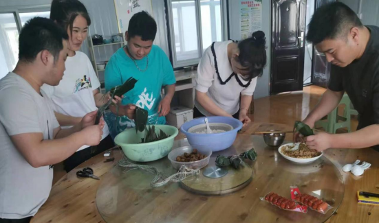 項目部提前準(zhǔn)備好糯米、蜜棗、粽葉等材料,“能工巧匠”們現(xiàn)場帶徒,指導(dǎo)大家疊粽葉、填糯米、放餡料、壓緊實、扎線繩。一番通力協(xié)作、互學(xué)有無,包的粽子也從形狀各異慢慢變得標(biāo)準(zhǔn)統(tǒng)一。粽子雖小卻讓大家拿出了工作的熱情與勁頭,嘗著新鮮出鍋的粽子,管理人員感受到滿滿的參與感、成就感。隨后,大家又各顯身手,開始包餃子。